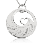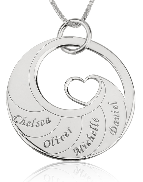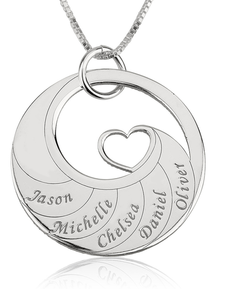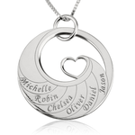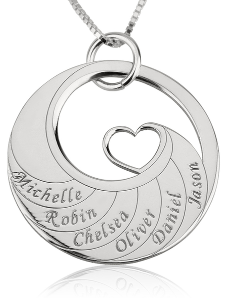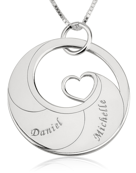Mother's Heart Necklace with Engraved Names - Sterling Silver