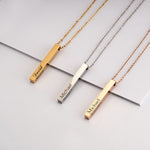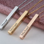You can add 1 - 4 names or words of your choice on this beautiful Engraved 3D Bar Necklace.
