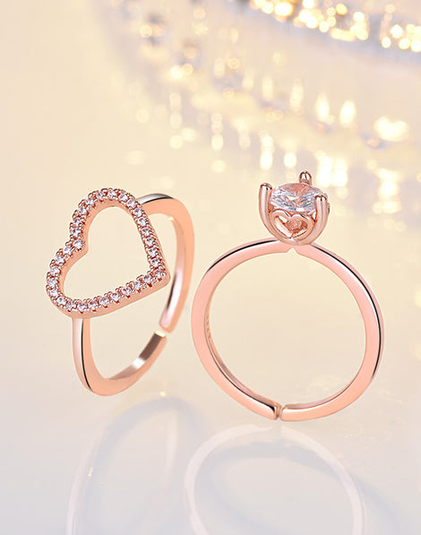 Rose Gold Colour Heart Shaped Two in One Open Ring. Gives an Elegant look. Stones are made of Zircon.