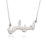 Arabic Writing Necklace is One of the Favorite and Stylish Necklace. Where you can Engrave Name or Word in Arabic. If you don't know to write in Arabic, we can translate it for you from English.  Available in Sterling Silver, Gold Plated, Rose Gold Plated, 14K Gold and 14k white Gold.