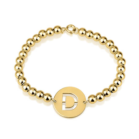Cut Out Initial Bead Bracelet 24k Gold Plated