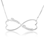 Double Heart Infinity Necklace is an unique necklace features an infinity symbol formed by two hearts. This heart shaped infinity pendant is sure to warm her heart every time she wears it. Give it as a Personalised Gift by adding your Names in it.