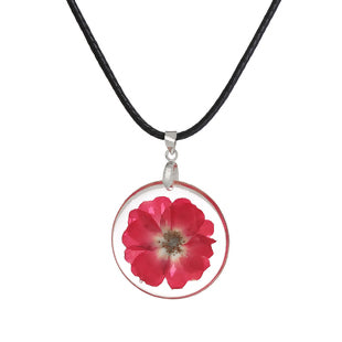 Transparent Resin Dried Flower Necklace Black Rope Chain 45cm(17 6/8") long