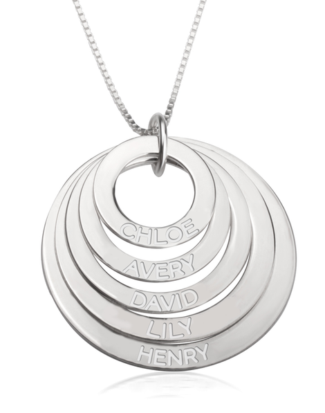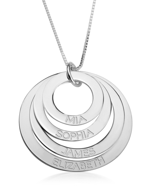 Engraved Mother Necklace is a Best Mother's Day Gift or Mothers Birthday Gift. You can Engrave up to Five Names in this Necklace and make it as a Personalised Gift. In this Engraved Mother Necklace the Names are Engraved in the Disc. You can Add up to Five Discs and Five Names in one on each Disc.