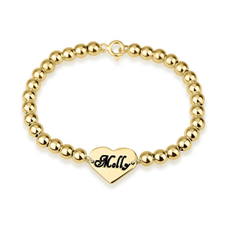 Heart Bead Bracelet is one of the stylish Bracelet which suits almost everyone beyond age. In this Heart Bead Bracelet you can customise it with the Name/ Word of your choice. Heart Bead Bracelet Comes in Sterling Silver and 24k Gold Plated Material.