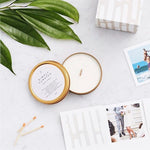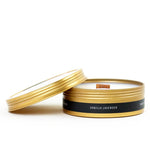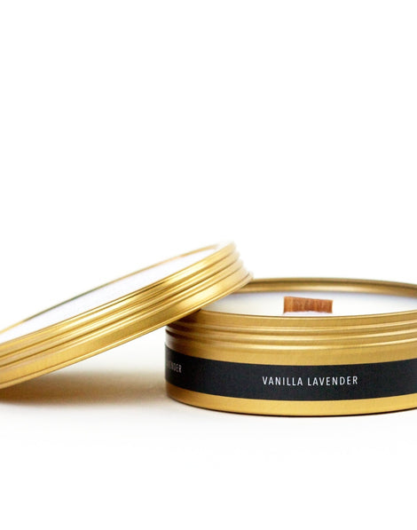 The signature soy candle is poured into a chic gold travel tin so you can take a little bit of home with you wherever you go. Each tin holds 3.5 oz. and the wood wick will deliver a crackling glow for up to 15 hours. Each one of the soy travel candles burn cleanly and safely and when you’re done pop on the lid and your candle will be ready for your next escape. Made in USA